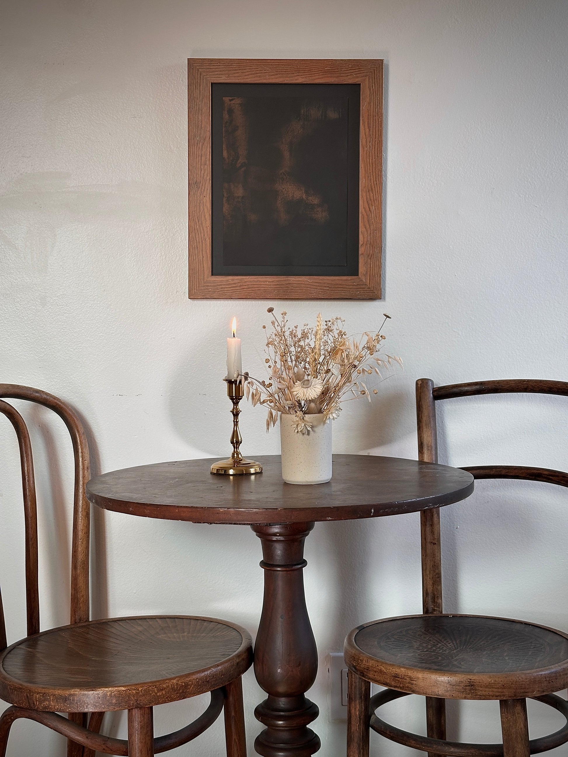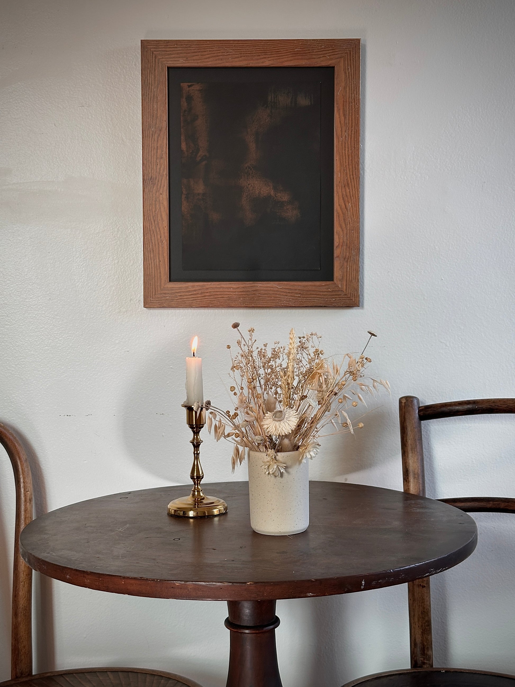 Mixed media on paper, vintage wood frame.