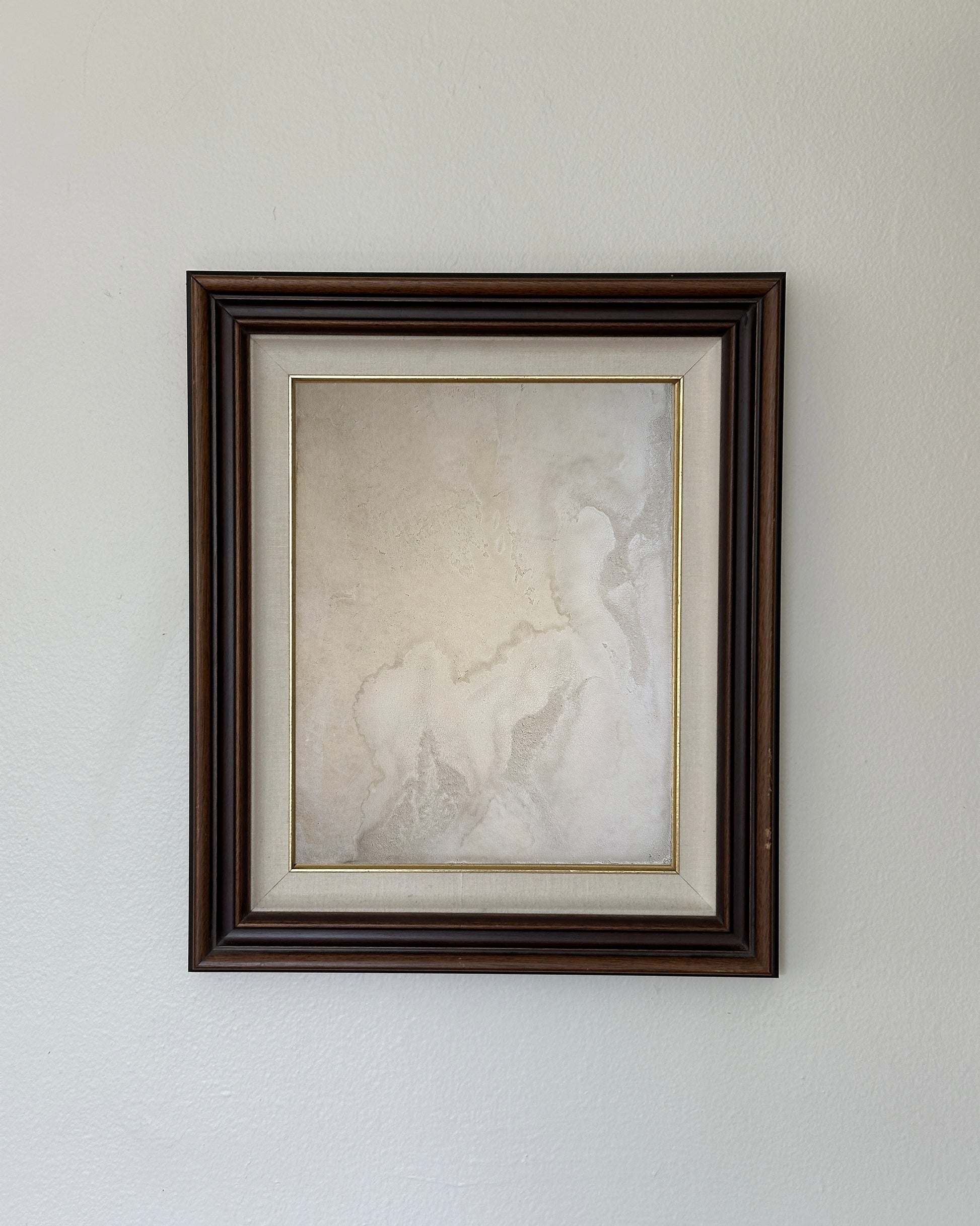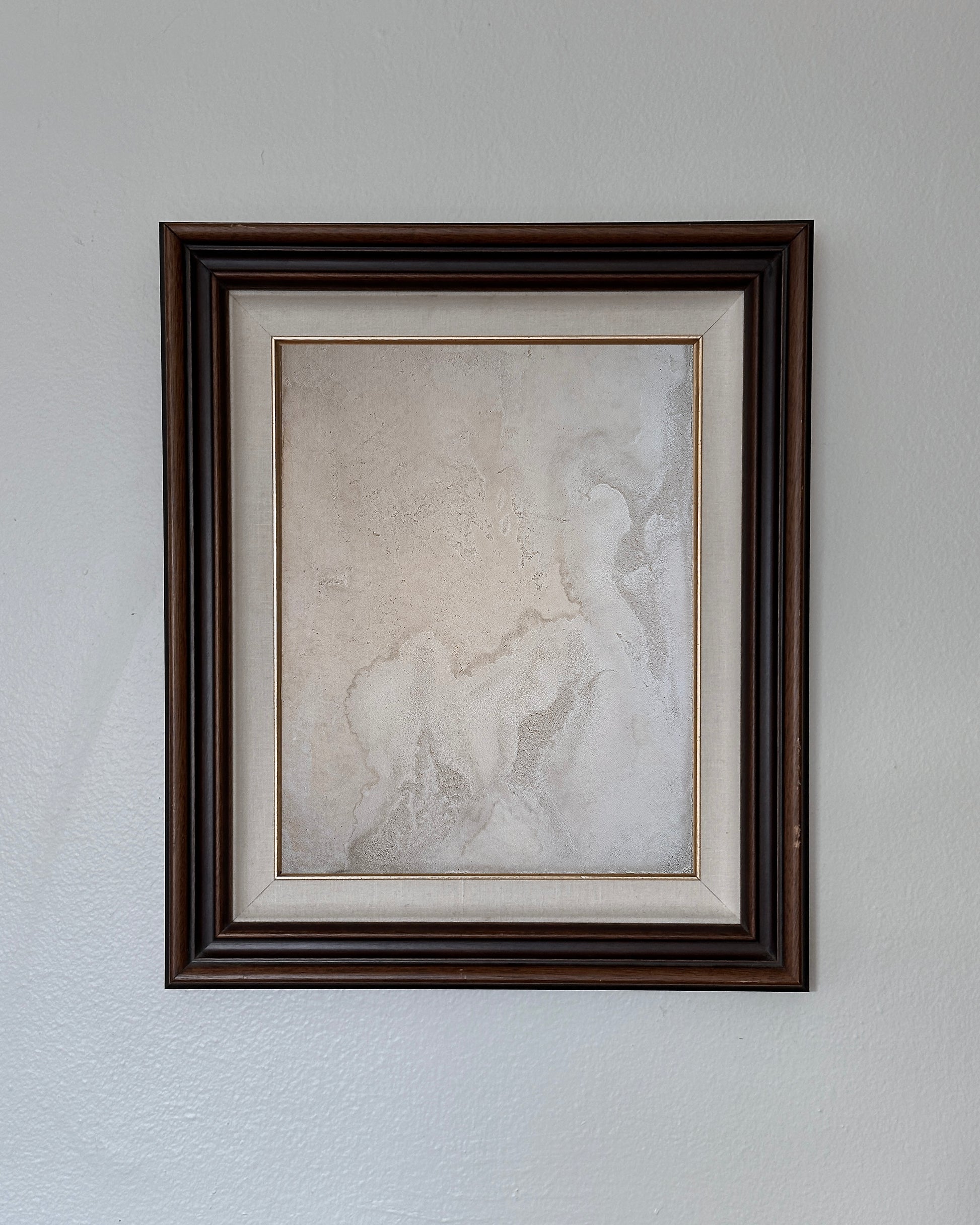 A quiet echo of stone and time. This naturally textured watercolor painting was created using coffee and earth pigments, revealing an organic formation that feels both ancient and weightless. Subtle gradients and shifting mineral tones evoke the surface of weathered rock, parchment, or fog, inviting stillness and reflection. Its soft, neutral palette pairs beautifully with the lived-in charm of vintage interiors, from French country to wabi-sabi spaces.